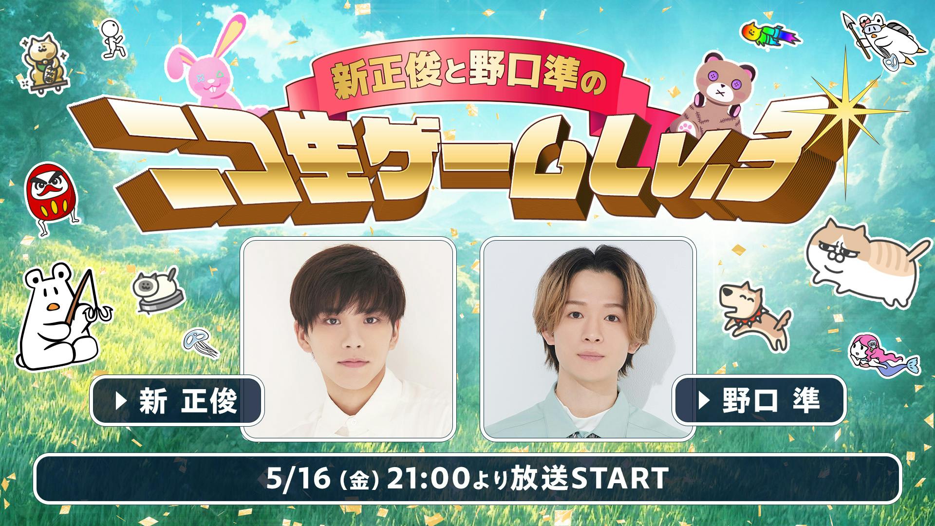 新正俊と野口準さんのニコ生レギュラー番組のシーズン3「新正俊と野口準の二コ生ゲームLv.3」の初回配信のお知らせです。